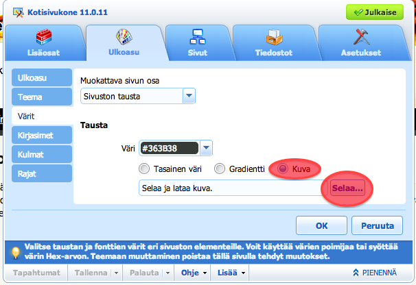 Tämä ohje opastaa, miten kotisivukoneella vaihdat sivuston taustakuvan.